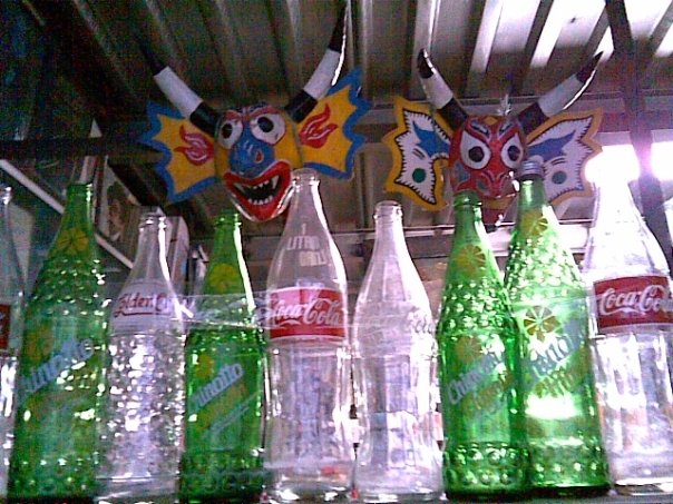 Yare Devils’ masks and old recycled bottles at la Gran Pulperia shop in western Caracas (2008)